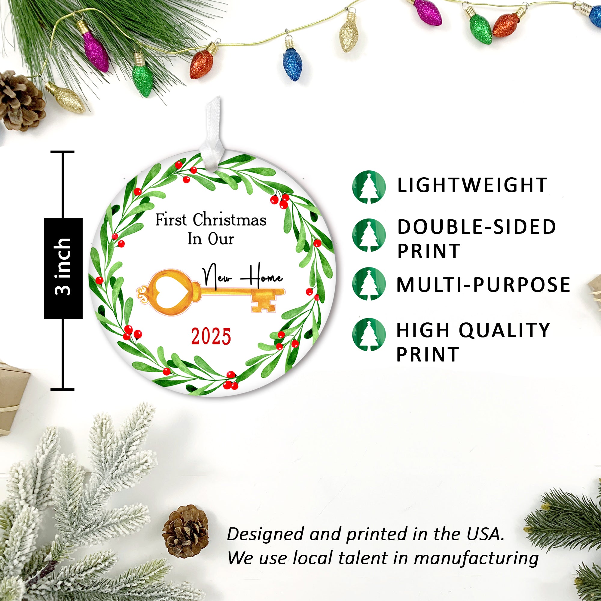 First Christmas in Our New Home Ornament 2025, 3" Ceramic Christmas Ornament, Housewarming Gift, Xmas Tree Decoration